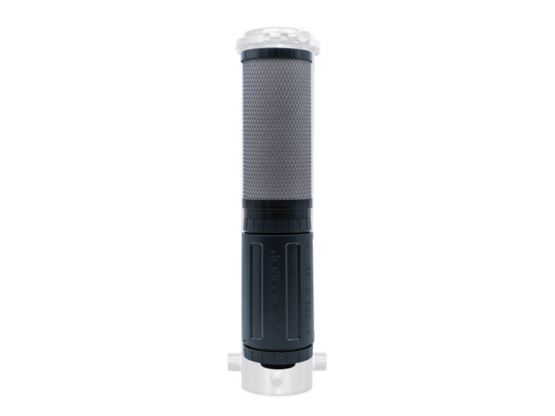 Le DIVOadsorb Éco utilise exactement les mêmes média filtrants que les versions premium. La différence réside dans le boîtier (composite vs inox) et le format de cartouche (capacité réduite). La qualité de filtration est strictement identique — seule la durée de vie entre remplacements est plus courte.